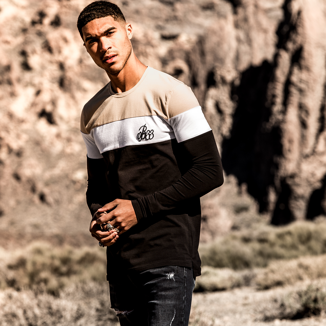 Long sleeved athletic tee in a triple colour-block cut and sew design. Iconic B33 embroidery on the left chest.