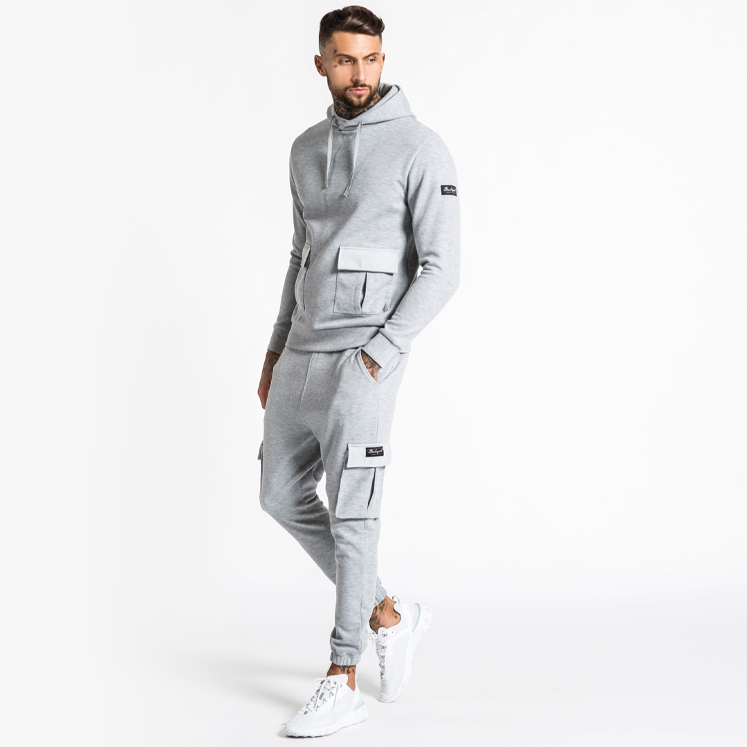 Overhead athletic fit hoodie in grey marl with stretch fabric, twin pocket design, Bee Inspired label logo on the left arm and lined hood.