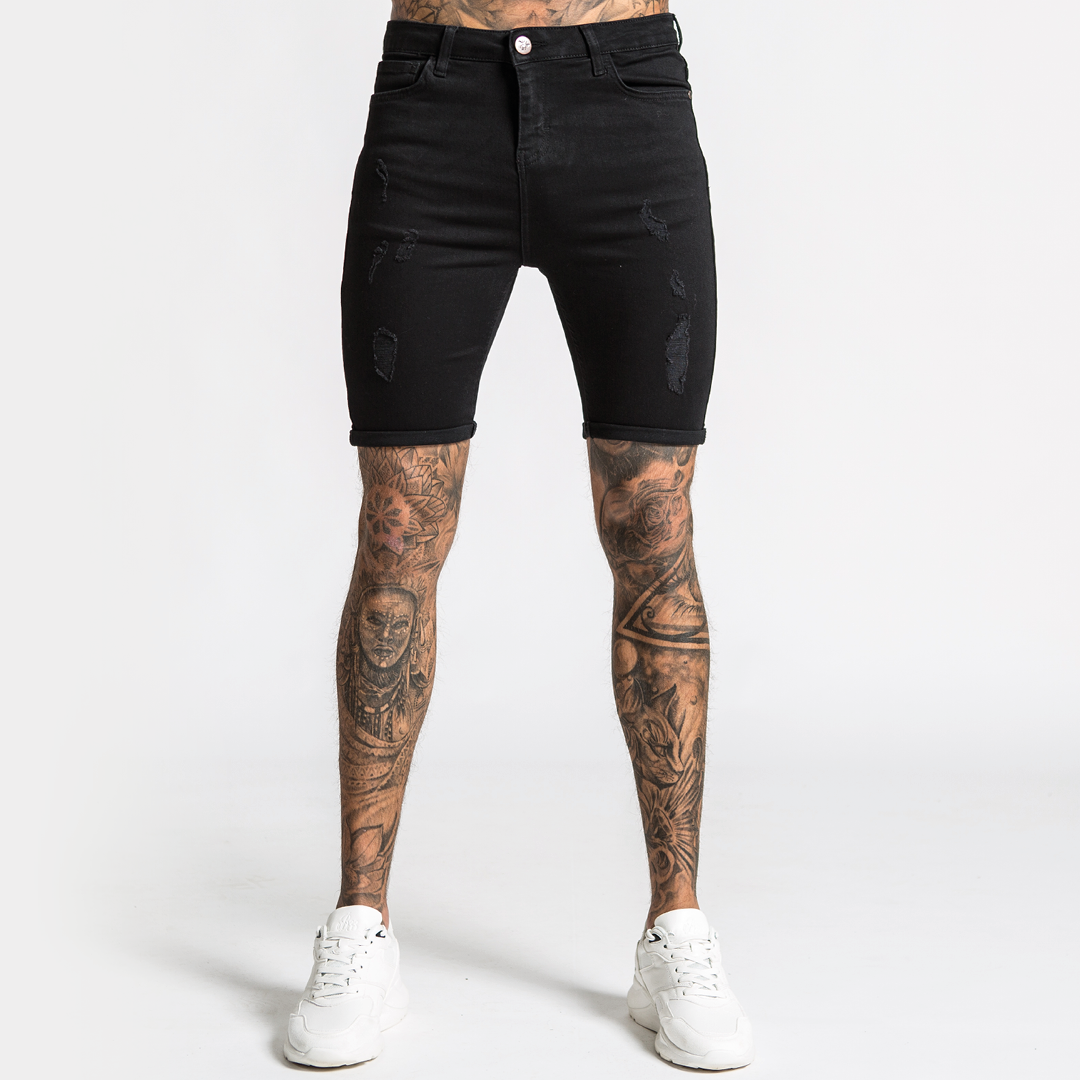BEE INSPIRED LUCA DENIM SHORT - DISTRESSED JET BLACK