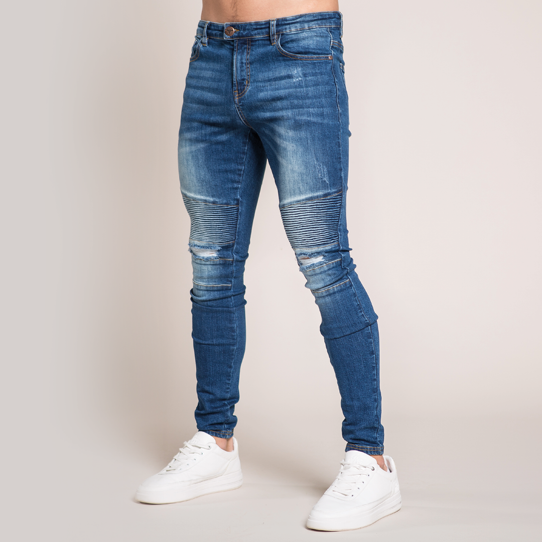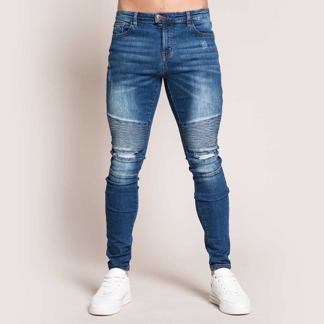 BEE INSPIRED MAUER BIKER JEANS - MID BLUE