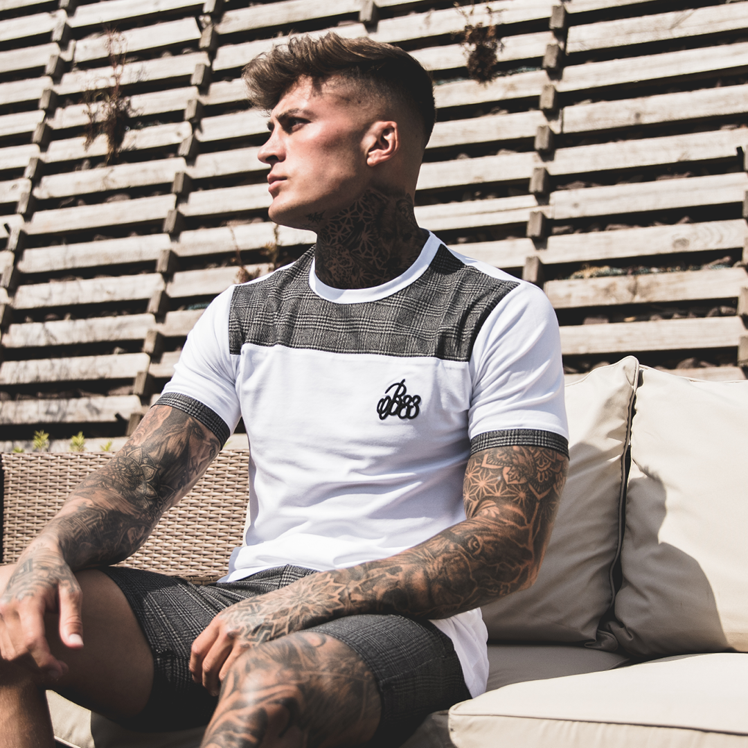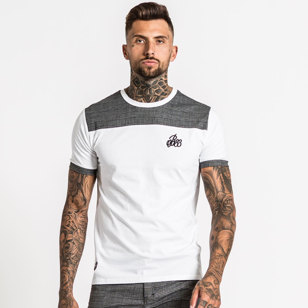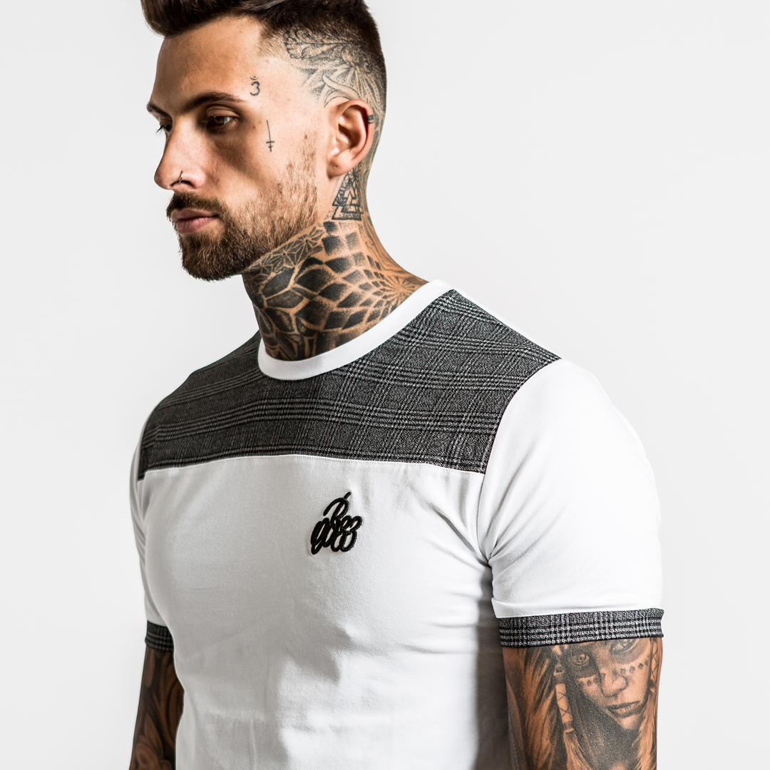 BEE INSPIRED OSLO TEE - WHITE / BLACK / GREY CHECK